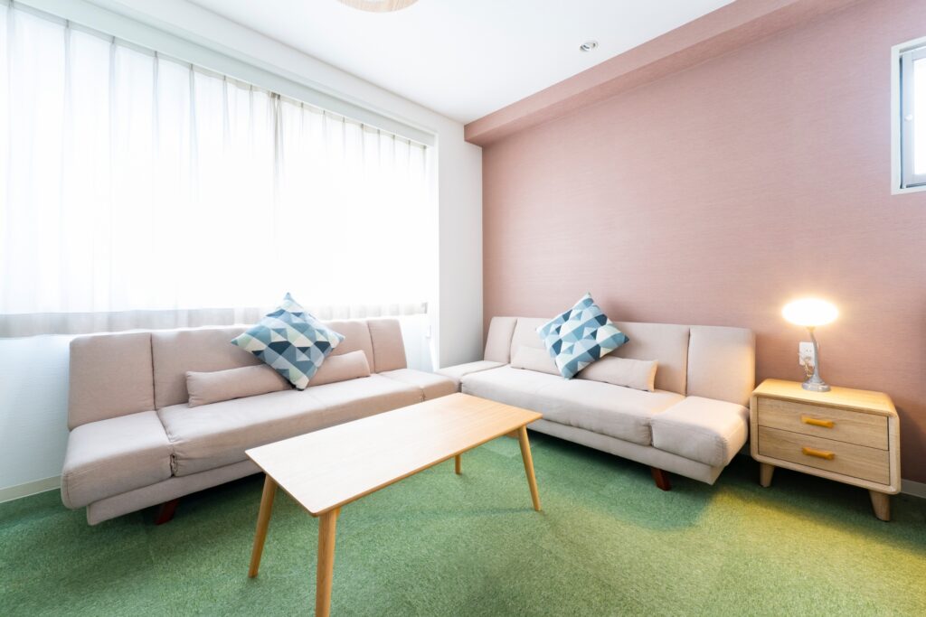 寝室には柔らかなパステルカラーを選べば、心地よい安眠をサポートしてくれます。特に最近は少しくすみのある、落ち着いたスモークカラーが人気です。