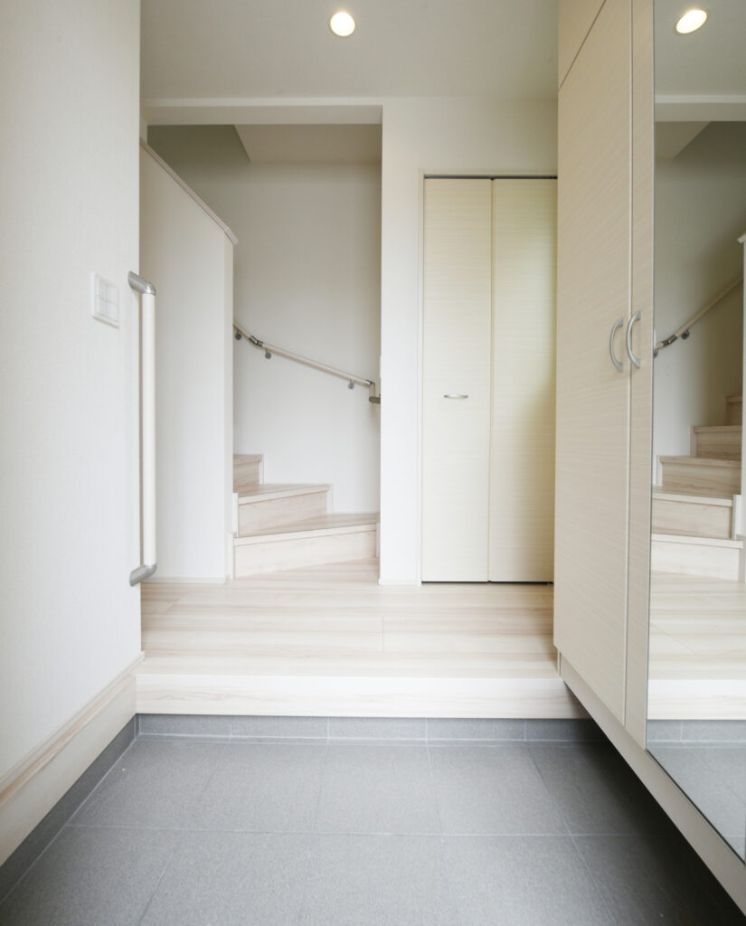 また、育児や介護のために玄関を広くとることで利便性が大きく上がります。ベビーカーや車椅子、ペット用品の収納にもオススメです。