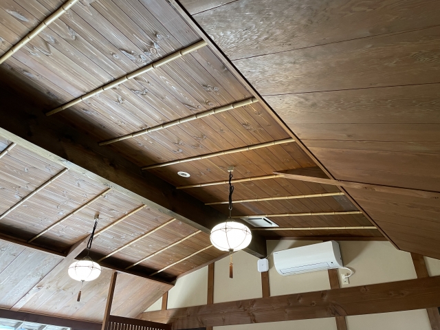 ●デメリット:和室や和モダンな部屋向きの天井。施工が複雑で、コストがかかる。