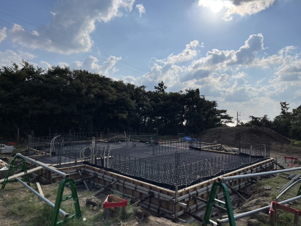鉄筋コンクリート造のこちらの住宅は現在、型枠作業を終え、鉄筋の組み立て作業へと着手しています。