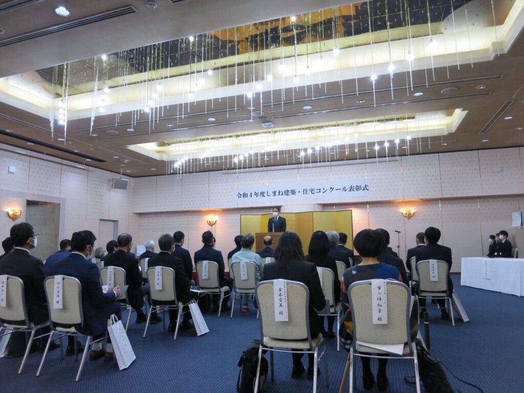 こんにちは。少し前の話になりますが、3月7日に「サンラポーむらくも」にて開催された「令和4年度しまね建築・住宅コンクール」の授賞式に参加いたしました。